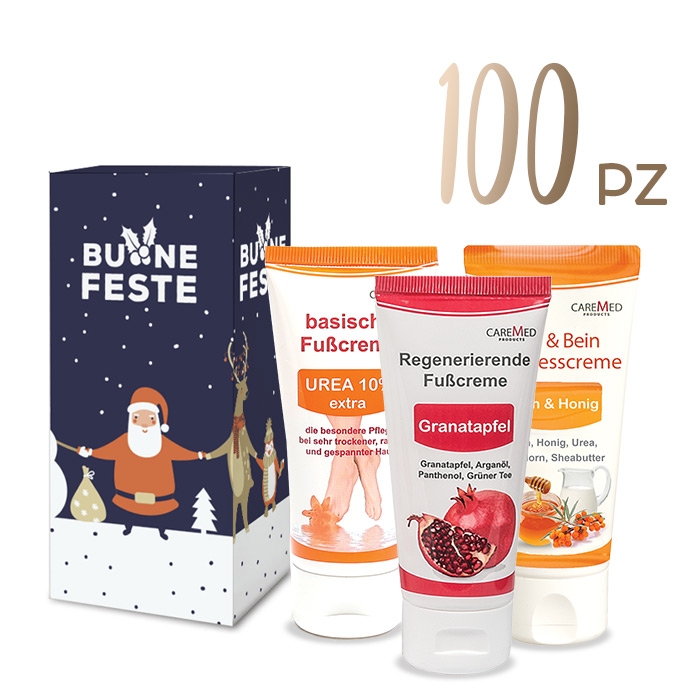 Idea regalo per Natale composta da 5 creme assortite, della linea Caremed da 50 ml con elegante pack di Natale.