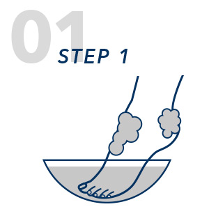 Il primo step del trattamento è molto importante. Disinfettare il piede e lasciare in pediluvio per circa 5 minuti.
