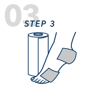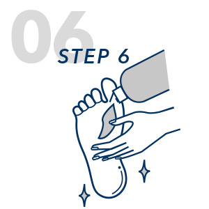 Applicare le salviette sulle zone del piede da trattare e avvolgere il tutto in una pellicola trasparente. Lasciare in posa per 2 minuti.